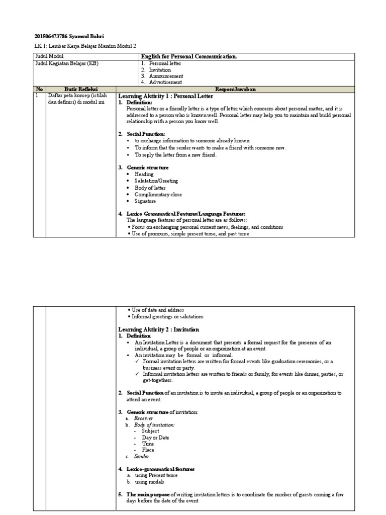 Lk 1 Modul 2 English For Personal Communication 201506473786 Syamsul Bahri Pdf Advertising Linguistic Typology